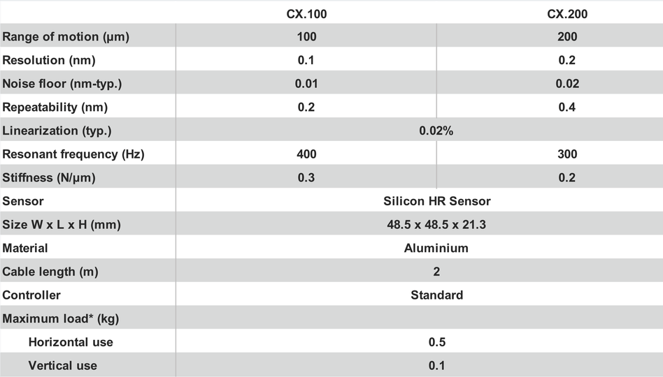 CX 是一款价格实惠的小型线性纳米位移台,提供100 μm或200 µm的X轴运动。其紧凑设计使其成为许多光子学和光纤定位应用的理想工具。如果需要,还可以提供带有Y轴或Y-Z轴的型号(请参阅2轴型号 C2 和3轴型号 C3)。