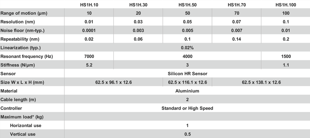 HS1H 是一种紧凑型纳米位移台,可以组合形成 2 轴或甚至 3 轴的纳米定位系统。它提供 10、30、50、70 或 100 微米的运动范围,并且有一个 33 毫米的中心孔,使其非常适合光学显微镜应用。由于直接驱动结构,它具有特别快的步进响应时间。