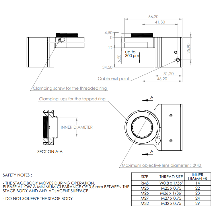 黄铜安装环可以轻松更换,以确保每个物镜都能适配FOC纳米位移台。可选的螺纹有RMS、M25、M26、M27和M32。
