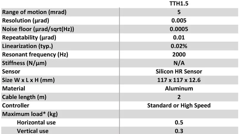 TT1 是一个1轴位移台(Theta),运动范围为5或10mrad。它是在需要光学束扫描的应用中理想的工具。这使得这个高速位移台成为粒子跟踪、光学镊子、束稳定和扫描显微镜等应用的畅销产品。这个纳米位移台是我们高速产品线的一部分(提供高功率控制器)。