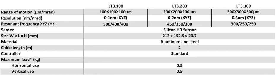 BIO3 是一款用于集成到任何类型的倒置显微镜中的三轴超低剖面纳米定位器。显微镜载玻片可以放入其矩形开口中。这个压电位移台可以与粗定位微位移台结合使用(见我们的 混合系统)。标准的BIO3是用铝制成的。BIO3.100(100µm版本)可用Invar材料制成,这允许更高的热稳定性,非常适合布鲁克原子力显微镜升级等应用。